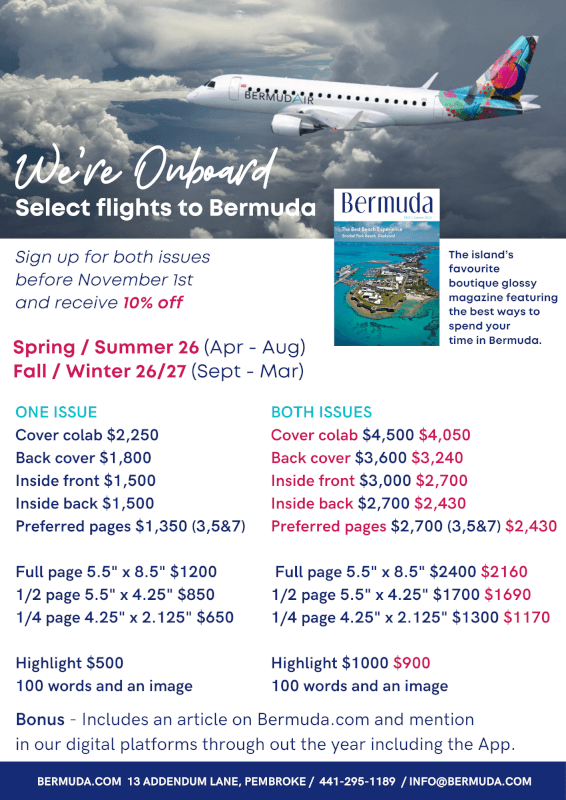 Bermuda Magazine will publish this season in APRIL & SEPTEMBER 2026 and is now open for space booking.