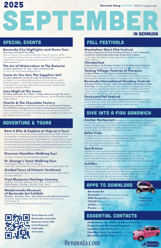 Your one page printable guide to exploring Bermuda in September. Click Here